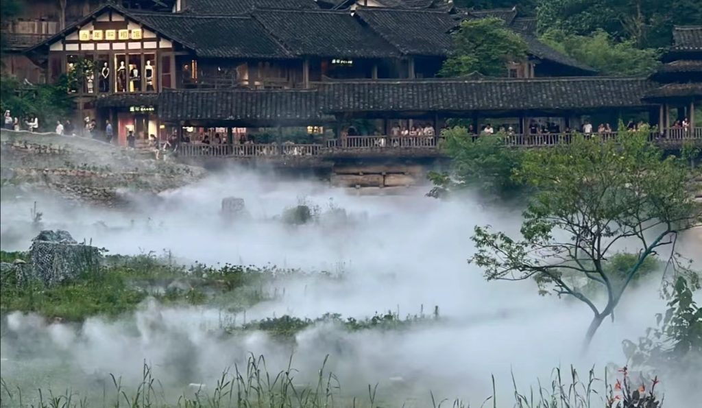 If Zunyi city feels gentle, Wujiang Village feels poetic. Surrounded by mountains and flowing along the Wujiang River, this traditional riverside village looks like a living ink painting. Wooden stilt houses line the water. Small boats drift quietly between reflections. Morning mist wraps the entire village in soft fog.