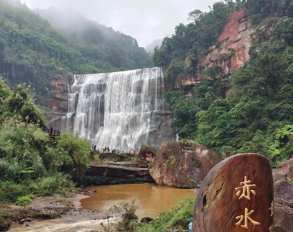 Deeper into the region, Chishui Waterfall delivers a completely different kind of impact. Water crashes down from high cliffs with raw force, filling the air with mist and sound. Standing in front of it, you don’t feel the need to talk. Nature does all the speaking.