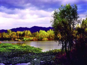 The human and natural landscape of this wetland has been grouped into three causeway and ten sights. The three causeways are Causeway Fu, Causeway Shou and Causeway Lu and according to Chinese there three words fu, lu and shou carry the meaning of prosperity, fortune and longevity. Causeway Fu is about 2,300 meters long, seven meters wide and stretches through the park from south to north. There are six bridges spanning across the bank and named with the Chinese character ’fu’. Causeway Lu is about 1600 meter long and 7 m wide and stretches through the core reserve area from west to the east. It connects the ecological arboretum having the major scientific research project of the wetland and also serving as an ecological bank. Causeway Shou on the other hand is longest of all three having length of 3600 meter and width of 4.5 meters. Crisscrossing waterways and ancient trees here forms the ecological landscape.