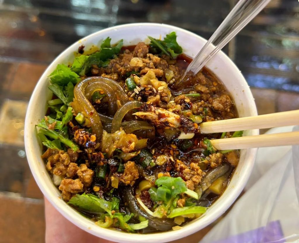 Chewy noodles, sour-spicy broth, crunchy peanuts—addictive and perfect for spice lovers.